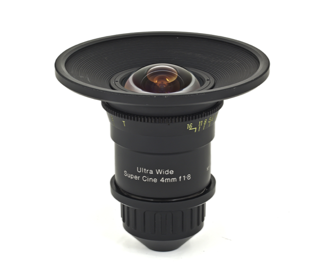 This is one of the widest lenses for the Super 16mm format. Keep in mind this is a rectilinear lens, not a fisheye. It does have some barrel distortion, which it to be expected from a lens this wide. The lens is sharp on center, with gradual falloff towards the edges. Thanks to its vintage coatings it has very nice flare character.